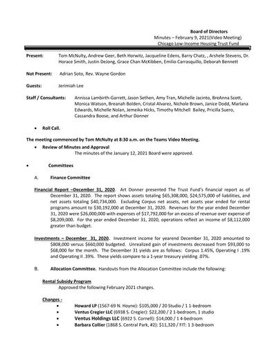 Documents Home » Board Meeting Minutes » 2021 Folder 2021 Home » Board Meeting Minutes » 2021 » Minutes Board of Directors FEB 9 2021 final pdf Minutes Board of Directors FEB 9 2021 final Published on 10 December 2024 Modified on 29 April 2025 By Reese Robinson 69 downloads Download (pdf, 152 KB) Minutes-Board of Directors -FEB 9 2021 .final.pdf Home » Board Meeting Minutes » 2021 » Minutes Board of Directors Jan 12 2020 final pdf Minutes Board of Directors Jan 12 2020 final Published on 10 December 2024 Modified on 29 April 2025 By Reese Robinson 77 downloads Download (pdf, 242 KB) Minutes-Board of Directors -Jan 12 2020.final.pdf Home » Board Meeting Minutes » 2021 » Minutes Board of Directors March 9 2021 final pdf Minutes Board of Directors March 9 2021 final Published on 10 December 2024 Modified on 29 April 2025 By Reese Robinson 67 downloads Download (pdf, 153 KB) Minutes-Board of Directors -March 9 2021-final.pdf Home » Board Meeting Minutes » 2021 » Minutes Board of Directors May 11 Default Minutes Board of Directors May 11 Published on 29 April 2025 Modified on 29 April 2025 By dunbarr 63 downloads Download (, 156 KB) Minutes-Board of Directors -May 11 Home » Board Meeting Minutes » 2021 » Minutes Board of Directors May 11, 2021FINAL pdf Minutes Board of Directors May 11, 2021FINAL Published on 10 December 2024 Modified on 29 April 2025 By Reese Robinson 74 downloads Download (pdf, 156 KB) Minutes-Board of Directors -May 11, 2021FINAL.pdf Home » Board Meeting Minutes » 2021 » Minutes Board September 14 Default Minutes Board September 14 Published on 29 April 2025 Modified on 29 April 2025 By dunbarr 68 downloads Download (, 128 KB) Minutes-Board-September 14 Home » Board Meeting Minutes » 2021 » Minutes Board September 14, 2021 pdf Minutes Board September 14, 2021 Published on 10 December 2024 Modified on 29 April 2025 By Reese Robinson 69 downloads Download (pdf, 128 KB) Minutes-Board-September 14, 2021.final (1).pdf «12